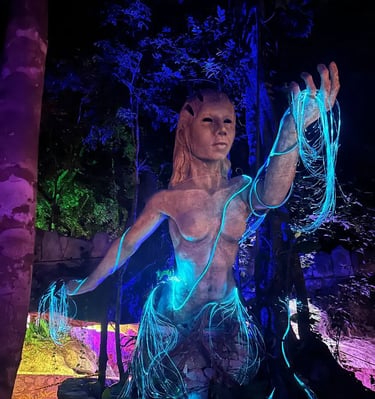 Descubre la experiencia auténtica de luces y esculturas en nuestro restaurante dentro de un cenote en Tulum, con la esencia de la ciudad.
